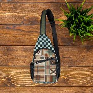 “Earth Tone Plaid & Mint Checker” Graphic Print Chest Bag