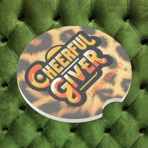 Leopard Print “Cheerful Giver” Soapstone Car Coaster