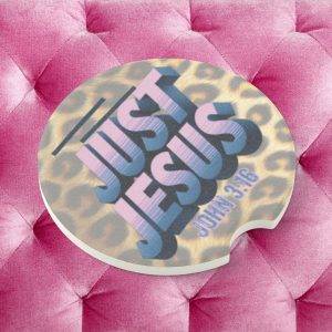 Leopard Print “Just Jesus” Soapstone Car Coaster