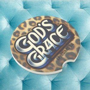 Leopard Print “God’s Grace” Soapstone Car Coaster