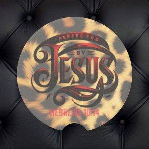 Leopard Print “Perfected by Jesus” Soapstone Car Coaster