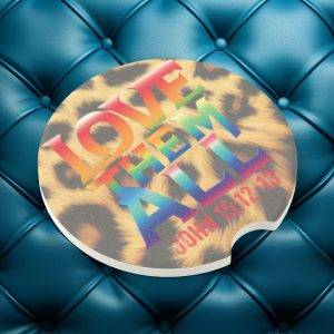 Leopard Print “Love Them All” Soapstone Car Coaster