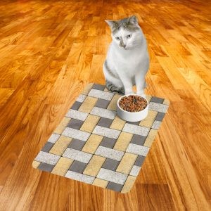 “Yellow & Gray Pavers” Pet Food Mat (12×18)