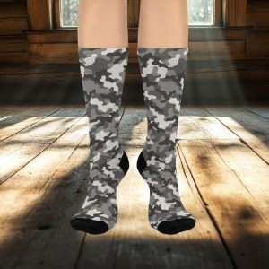 “Gray Distressed Checker” Print Cushioned Crew Socks