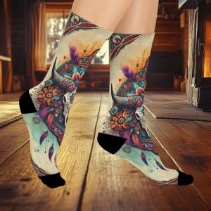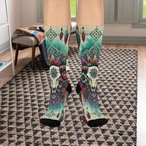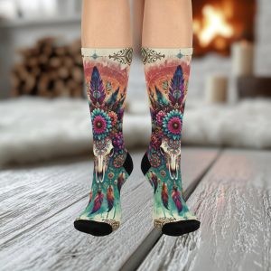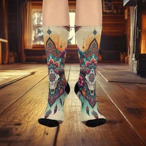 “Bull Skull Boho Print V.3” Cushioned Crew Socks
