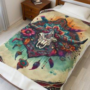 Color Bull Skull Boho V.2 Graphic Velveteen Plush Blanket