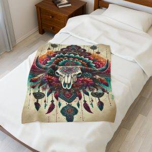 Bull Skull Boho Graphic Velveteen Plush Blanket