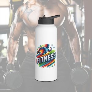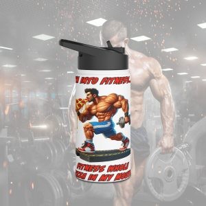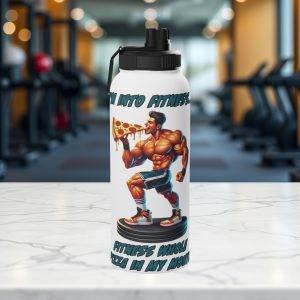 “Men’s Fitness/Pizza Pun Graphic V.2” Stainless Steel Water Bottle, Sports...