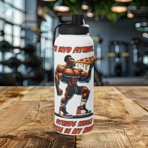 “Men’s Fitness/Pizza Pun Graphic V.1” Stainless Steel Water Bottle, Sports...