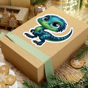 Baby Blue Velociraptor Kiss-Cut Sticker