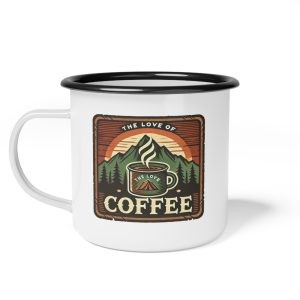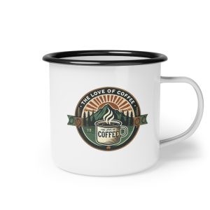 “The Love of Coffee” Enamel Camp Cup Round Graphic