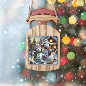 Embrace the holiday cheer with our "Neighborhood Snowman" Sled Ornaments,...
