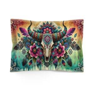 Boho Bull Skull Graphic Microfiber Pillow Sham