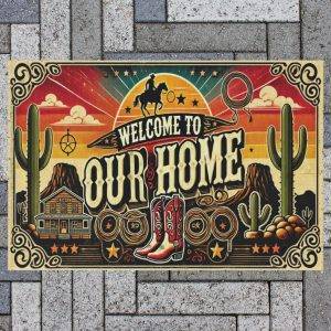 Western Welcome To Our Home Color 3 Outdoor Rug