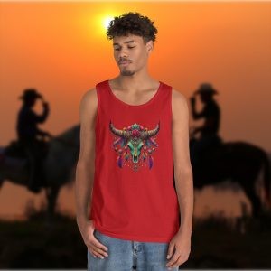 Our “Bull Skull Boho” graphic print Unisex Heavy Cotton Tank...