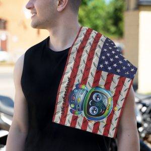 SHEETS BOYS “DUDE Diamond Plate American Flag” Rally Towel, 11×18