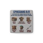 Add a touch of spiritual inspiration to your home or office with our Porcelain Magnet, beautifully adorned with anΒ “Armor of God” theme graphic. This magnet not only serves as a powerful reminder of faith but also as an elegant piece of art. Crafted from high-quality porcelain, it offers a glossy and refined surface that enhances the vibrant and detailed depiction of the Armor of God, bringing both beauty and a meaningful message to any magnetic surface. The sturdy magnet on the back ensures it stays securely in place on your refrigerator, filing cabinet, or any other metallic area, making it a perfect way to keep important notes visible or simply to decorate your space with a symbol of spiritual strength and protection.