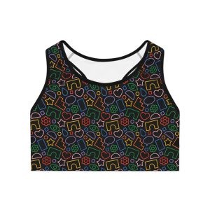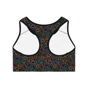 Meet your new go-to workout essential—the “Black Color Collage” Sports Bra. Designed for both performance and personality, this sports bra features an all-over print that adds bold style to your fitness routine. Its compression fit provides excellent support during high-intensity activities, while the double-layer front ensures lasting comfort and coverage. You can choose either black or white stitching depending on what looks best to you. Crafted from 83% moisture-wicking polyester and 17% spandex, it keeps you dry and moving freely. With a medium-weight fabric (6.5 oz/yd²) and tear-away neck label for added comfort, this sports bra blends fashion, function, and all-day confidence in one sleek piece.