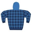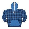 Embrace the cooler weather in style with our custom-designed Blue Plaid graphic Pullover Hoodie. This hoodie is expertly crafted from 100% polyester, making it not only warm but also breathable, ideal for the transitional seasons. Weighing 7.4 oz/yd² (250 g/m²), it offers a comfortable medium weight that provides enough insulation for a chilly day without the bulk. The hoodie features a spacious front pocket, perfect for keeping your hands warm or storing essentials, and an adjustable drawstring hood that ensures a perfect fit. Long sleeves and a classic fit enhance its timeless appeal while white thread adds a subtle contrast, highlighting the intricate details of its construction. Each piece is custom cut and sewn, providing a unique, personalized touch that sets it apart from off-the-rack options. Assembled in the USA, this pullover is not just a piece of clothing but a statement of fashion and quality. Whether you’re heading out for a casual walk, meeting friends, or simply relaxing at home, this hoodie promises to keep you comfortable, cozy, and stylish.