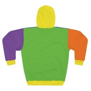 Embrace the cooler weather in style with our custom-designed Bright Multi-Color graphic Pullover Hoodie. This hoodie is expertly crafted from 100% polyester, making it not only warm but also breathable, ideal for the transitional seasons. Weighing 7.4 oz/yd² (250 g/m²), it offers a comfortable medium weight that provides enough insulation for a chilly day without the bulk. The hoodie features a spacious front pocket, perfect for keeping your hands warm or storing essentials, and an adjustable drawstring hood that ensures a perfect fit. Long sleeves and a classic fit enhance its timeless appeal while white thread adds a subtle contrast, highlighting the intricate details of its construction. Each piece is custom cut and sewn, providing a unique, personalized touch that sets it apart from off-the-rack options. Assembled in the USA, this pullover is not just a piece of clothing but a statement of fashion and quality. Whether you’re heading out for a casual walk, meeting friends, or simply relaxing at home, this hoodie promises to keep you comfortable, cozy, and stylish.