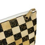 Add a splash of color and functionality to your daily essentials with our vibrant Brown Distressed CheckerΒ Accessory Pouch. Available in multiple sizes, from the compact small (8.35″ X 5.98″) to the more spacious large (11.81″ X 8.35″), these pouches are incredibly versatile. Whether used as a sleek pencil case or as a handy cosmetic travel bag, they fit the bill for various needs. Each pouch is crafted from 100% polyester, ensuring durability and easy maintenance. The design features flat corners and a robust zipper closure for secure storage. Depending on the chosen zipper color, the interior is fused with either a non-woven black or white laminate, adding an extra layer of protection for the items inside. With a size tolerance of 0.375″ (0.9 cm), these pouches are precisely made and assembled in the USA from globally sourced parts, offering a perfect blend of style and practicality for anyone on the go.