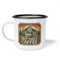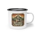 “But First COFFEE” Enamel Camp Cup Square Graphic