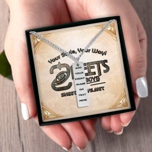 This stylish Cuban chain necklace features a sleek vertical bar pendant designed for timeless appeal and meaningful personalization. Crafted from durable stainless steel and available in classic steel silver and 18k gold plated plated finishes, the necklace measures 50 cm with a 5 cm extender for a comfortable, adjustable fit. The polished 10 × 40 mm vertical bar pendant is precision laser engraved and can be customized on both the front and back, making it ideal for graphics, names, initials, dates, or special messages. Perfect for everyday wear or as a thoughtful gift for birthdays, anniversaries, or milestones, this personalized necklace is ready to ship within 2–5 business days.