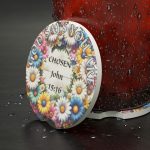 Bring a touch of serene beauty to your daily commute with our Flowered Wreath Religious Soapstone Car Coasters. These elegantly designed coasters feature a delicate flowered wreath print that serves as a gentle reminder of love and faith, perfect for enhancing your vehicle’s interior while expressing your spiritual devotion. Made from 100% soapstone, known for its natural ability to absorb condensation, these coasters protect against spills and drips in most standard car cup holders. Each coaster measures 2.6β€³ Γ— 2.6β€³ (6.6cm Γ— 6.6cm) and comes with a matte finish and one-sided print that adds a stylish and personalized touch to your car’s decor. Available in sets of one or two, these coasters are not only practical but also serve as a beautiful expression of faith, making your drive more enjoyable. Remember to measure your cup holders before purchasing to ensure a snug fit and enjoy the combination of functionality and elegance these coasters bring.