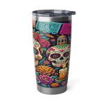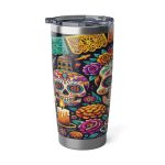 Enjoy your favorite beverages on the go with our 20oz stainless steel tumbler, designed to keep drinks at the perfect temperature thanks to its double-wall insulation. Whether it’s a hot coffee on a chilly morning or a cold lemonade on a sunny day, this tumbler ensures your drink stays just as you like it for hours. Crafted from durable stainless steel, this tumbler is robust enough for daily use and stylish enough to make a statement with its Day of the Dead 1 graphic design. It fits perfectly in car cup holders, making it ideal for your morning commute or a road trip. The spill-resistant sliding lid features a rubber gasket to seal in your beverage securely, preventing any leaks or spills. Whether you’re at the office, in your car, or enjoying the outdoors, this tumbler is a reliable companion that combines functionality with sleek design.
