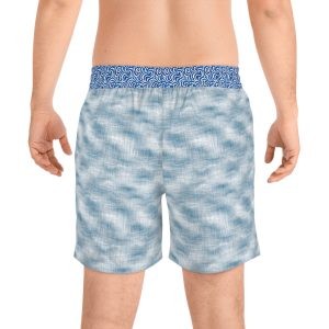 Dive into summer with style and comfort with our Graphic Faded Blue print Men’s Mid-Length Swim Shorts. Crafted from a blend of 95% polyester and 5% spandex, these shorts offer the perfect combination of flexibility and quick-drying properties, ideal for both swimming and lounging on sunny days. The lightweight fabric and relaxed fit enhance comfort, allowing you to move freely whether you’re hitting the waves or chilling beachside. Each pair features an inner mesh brief for additional support and breathability, while the choice of black or white drawstrings adds a touch of personalized style. Practicality is also key with two side pockets, perfect for keeping small items secure while on the go. Whether you’re planning a beach vacation or a poolside retreat, these mid-length swim shorts combine functionality and fashion for all your summer adventures.