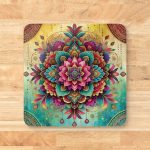 Enhance your home decor and protect your surfaces with our Flower Boho Graphic Print Corkwood Coaster Set. Each set includes four coasters, each measuring 3.75″ × 3.75″ (9.5cm x 9.5cm), perfectly sized for all types of drinkware. These coasters are crafted with a high-gloss MDF top that not only adds a vibrant touch of art to your tables but is also easy to clean and highly durable. The underside features a cork backing that effectively prevents sliding and protects your furniture from scratches and stains. At 0.16″ (0.4cm) thick, these coasters combine practicality with sleek design, making them an ideal choice for adding a splash of style to any setting. Whether you’re enjoying a casual family meal or entertaining guests, this coaster set is sure to impress with its functionality and aesthetic appeal.