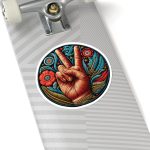 Bring a touch of traditional craft to modern surfaces with our Hand Peace Sign V.1 Embroidery Graphic Kiss-Cut Stickers. These unique stickers replicate the intricate details and vibrant colors of classic embroidery designs, capturing the essence of needlework in a durable, adhesive form. Made entirely from high-quality vinyl, these stickers are designed to withstand the elements, resisting scratches, to maintain their stunning appearance over time. The strong 3M adhesive ensures they stick firmly to any surface, providing a lasting embellishment that won’t peel or fade.  Available in four distinct blank sizes to match your needs: 2×2″, 3×3″, 4×4″, and 6×6″ (Actual size varies based on graphic) and with the option of either a white or transparent background, these stickers offer versatility for decorating laptops, phone cases, water bottles, and more. Each sticker is precisely cut to follow the unique contours of the embroidery design, allowing for easy peel-and-stick application and a seamless look on any item. All stickers are 0.004″ (1mm) thick and come with a stylish glossy finish. Whether you’re looking to personalize your gear or add a decorative touch to your workspace, these Embroidery Graphic Kiss-Cut Stickers blend the beauty of handmade art with the convenience and durability of modern materials, making them a perfect choice for both practical use and aesthetic appeal.