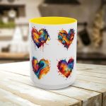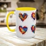 Brighten your day and infuse a little love into every sip with our enchanting “Hearts” ceramic coffee mug. This beautifully designed mug is available in two sizesβ€”11oz and 15ozβ€”and features a delightful hearts pattern, making it a perfect addition to your morning coffee or afternoon tea ritual. The “Hearts” design consists of a charming array of hearts in various styles and shades. Crafted from durable white ceramic, this mug is built to last and is offered with eight vibrant options for the interior and handle, allowing you to personalize your mug or coordinate with your existing kitchenware. The sturdy C-handle provides a comfortable grip, enhancing your beverage experience whether at home or in the office. Ideal for those who cherish romantic or heart-themed designs, this mug not only brightens your day but also makes a thoughtful gift for loved ones, expressing affection and warmth with every use.