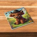 “Highland Cow with Cowboy Hat V.2” Ceramic Coaster