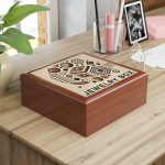 Secure and showcase your treasures in our elegantly crafted rubberwood jewelry box, enhanced with a distinctive Jewelry Box Abstract graphic ceramic tile on the lid. This stylish jewelry box is available in three sophisticated finishesβ€”Golden Oak, Red Mahogany, and Ebony Blackβ€”each providing a unique backdrop for the vibrant 6″ x 6″ glossy graphic tile that adorns the top. The box itself is constructed from high-quality rubberwood, known for its durability and beautiful grain, and finished with a glossy varnish that adds a luxurious shine. It features dual hinges that lock at a 90-degree angle to ensure the lid stays open while you browse your collection, making it both functional and secure. The interior is lined with soft felt material to protect your jewelry from scratches and damage. Whether placed on a dresser, vanity, or shelf, this jewelry box combines functionality with artistic flair, making it an exceptional choice for safeguarding your precious items while adding a touch of custom style to your decor.