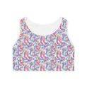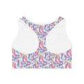 Meet your new go-to workout essential—the “Multidirectional Color Lanes” Sports Bra. Designed for both performance and personality, this sports bra features an all-over print that adds bold style to your fitness routine. Its compression fit provides excellent support during high-intensity activities, while the double-layer front ensures lasting comfort and coverage. You can choose either black or white stitching depending on what looks best to you. Crafted from 83% moisture-wicking polyester and 17% spandex, it keeps you dry and moving freely. With a medium-weight fabric (6.5 oz/yd²) and tear-away neck label for added comfort, this sports bra blends fashion, function, and all-day confidence in one sleek piece.