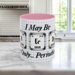 “I May Be NErDy But Only… Periodically!”—because honesty (and a bit of science humor) is always in style. Celebrate your inner geek with this witty mug that perfectly blends charm and chemistry. Whether you’re sipping your favorite brew or making your fellow lab mates chuckle, this mug is the perfect companion for your caffeinated adventures. Available in 12 vibrant accent color options with a matching handle and interior, this glossy ceramic mug holds either 11oz or 15oz of your favorite pick-me-up. The comfortable C-handle and high-fidelity print make it as functional as it is funny. It’s the ideal gift for science lovers, students, or anyone proud to be occasionally nerdy.