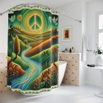 Transform your bathroom into a canvas of creativity with our Peace Hope & Love Stamp graphic shower curtain, a standout piece designed to infuse your space with originality and artistic flair. This shower curtain is made from highly durable polyester, ensuring it can withstand the humid conditions of the bathroom while maintaining its vibrant colors and detailed graphic prints. The design is not just functional but visually striking, turning your shower area into a focal point of artistry and style. Ideal for those who wish to add a unique touch to their bathroom décor, this curtain enhances the environment by combining practicality with aesthetic appeal. It’s important to note that while the polyester fabric provides good water resistance, a liner may be required for optimal waterproofing. The curtain features a one-sided print and does not include hooks, allowing for personal customization based on your decor needs. Please be aware that as a pre-constructed item, there can be a size variance of +/- 2 inches, ensuring each curtain maintains its handcrafted uniqueness.