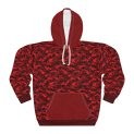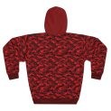 Embrace the cooler weather in style with our custom-designed Red Camo graphic Pullover Hoodie. This hoodie is expertly crafted from 100% polyester, making it not only warm but also breathable, ideal for the transitional seasons. Weighing 7.4 oz/yd² (250 g/m²), it offers a comfortable medium weight that provides enough insulation for a chilly day without the bulk. The hoodie features a spacious front pocket, perfect for keeping your hands warm or storing essentials, and an adjustable drawstring hood that ensures a perfect fit. Long sleeves and a classic fit enhance its timeless appeal while white thread adds a subtle contrast, highlighting the intricate details of its construction. Each piece is custom cut and sewn, providing a unique, personalized touch that sets it apart from off-the-rack options. Assembled in the USA, this pullover is not just a piece of clothing but a statement of fashion and quality. Whether you’re heading out for a casual walk, meeting friends, or simply relaxing at home, this hoodie promises to keep you comfortable, cozy, and stylish.