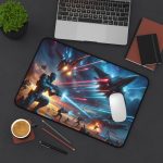 Elevate your workspace with our eye-catching “Space War 1” graphic Desk Mat, available in three practical sizesβ€”12” Γ— 18”, 12” Γ— 22”, and 31″ Γ— 15.5” (Size variance +/- 1”)β€”to seamlessly fit any desk layout. This desk mat isn’t just about aesthetics; it features a vibrant and colorful graphic design that injects personality and creativity into your office or home setup, making it more than a mere functional item. Crafted from 3 mm thick neoprene, the mat provides a soft, smooth surface that’s perfect for writing, typing, or gaming, while protecting your desk from scratches, spills, and everyday wear. The anti-slip backing ensures the mat stays firmly in place, offering a stable base for your computer, peripherals, and other desk items. Ideal for work, study, or play, this Desk Mat combines utility with artistic flair, bringing a burst of inspiration to your daily routines. It’s the perfect treat for yourself or a thoughtful gift for someone special who values both style and practicality in their workspace essentials.