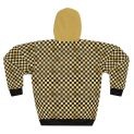 Embrace the cooler weather in style with our custom-designed Tan Checker graphic Pullover Hoodie. This hoodie is expertly crafted from 100% polyester, making it not only warm but also breathable, ideal for the transitional seasons. Weighing 7.4 oz/yd² (250 g/m²), it offers a comfortable medium weight that provides enough insulation for a chilly day without the bulk. The hoodie features a spacious front pocket, perfect for keeping your hands warm or storing essentials, and an adjustable drawstring hood that ensures a perfect fit. Long sleeves and a classic fit enhance its timeless appeal while white thread adds a subtle contrast, highlighting the intricate details of its construction. Each piece is custom cut and sewn, providing a unique, personalized touch that sets it apart from off-the-rack options. Assembled in the USA, this pullover is not just a piece of clothing but a statement of fashion and quality. Whether you’re heading out for a casual walk, meeting friends, or simply relaxing at home, this hoodie promises to keep you comfortable, cozy, and stylish.