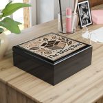 Secure and showcase your treasures in our elegantly crafted rubberwood jewelry box, enhanced with a distinctive The Bling Box graphic ceramic tile on the lid. This stylish jewelry box is available in three sophisticated finishesβ€”Golden Oak, Red Mahogany, and Ebony Blackβ€”each providing a unique backdrop for the vibrant 6″ x 6″ glossy graphic tile that adorns the top. The box itself is constructed from high-quality rubberwood, known for its durability and beautiful grain, and finished with a glossy varnish that adds a luxurious shine. It features dual hinges that lock at a 90-degree angle to ensure the lid stays open while you browse your collection, making it both functional and secure. The interior is lined with soft felt material to protect your jewelry from scratches and damage. Whether placed on a dresser, vanity, or shelf, this jewelry box combines functionality with artistic flair, making it an exceptional choice for safeguarding your precious items while adding a touch of custom style to your decor.