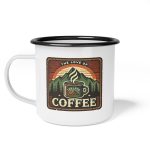 Embrace the rugged charm of the great outdoors with our custom Coffee Logo Style Graphic Enamel Camp Cup, the quintessential companion for any camping enthusiast. Constructed from cold-rolled steel plate with a robust enamel glazed surface, this 12oz mug is designed to withstand the harsh conditions of outdoor adventures. Not only is it anti-alkali and acid-proof, ensuring durability and resistance to environmental stresses, but it also boasts a glossy finish that enhances its visual appeal. The mug’s materials are BPA and lead-free, making it a safe choice for enjoying your favorite beverages. While ideally suited for the campsite, this cup is equally at home in your kitchen and can be cleaned effortlessly in the dishwasher. However, remember not to microwave it. Whether you’re sipping coffee by the morning fire or enjoying a hot drink under the stars, this enamel mug combines practicality with a touch of nostalgia to enhance your outdoor and at-home drinking experience.