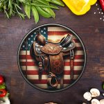 Enhance your home decor with a touch of rustic charm and national pride using our Western and Patriotic Graphic Cork Back Coaster. Perfect for adding a distinctive flair to any Western-themed decor or cabin setting, this coaster combines functionality with a unique aesthetic appeal. Each coaster features a round, glossy white top crafted from polyester-coated hardboard that not only provides a vibrant display for the graphic but also ensures durability and easy cleaning. The base is made from genuine cork, providing a non-slip surface that protects your furniture by preventing the coaster from sliding and keeping your tabletops safe from spills and heat marks. With a size of 4″ x 4″, it’s the perfect dimension for holding a variety of drinkware, from morning coffee mugs to evening cocktail glasses. This coaster is not just practical; it’s a decorative piece that brings color and character to any gathering or quiet drink at home.