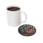 Enhance your home decor with a touch of rustic charm and national pride using our Western and Patriotic Graphic Cork Back Coaster. Perfect for adding a distinctive flair to any Western-themed decor or cabin setting, this coaster combines functionality with a unique aesthetic appeal. Each coaster features a round, glossy white top crafted from polyester-coated hardboard that not only provides a vibrant display for the graphic but also ensures durability and easy cleaning. The base is made from genuine cork, providing a non-slip surface that protects your furniture by preventing the coaster from sliding and keeping your tabletops safe from spills and heat marks. With a size of 4″ x 4″, it’s the perfect dimension for holding a variety of drinkware, from morning coffee mugs to evening cocktail glasses. This coaster is not just practical; it’s a decorative piece that brings color and character to any gathering or quiet drink at home.