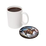 Enhance your home decor with a touch of rustic charm and national pride using our Western and Patriotic Graphic Cork Back Coaster. Perfect for adding a distinctive flair to any Western-themed decor or cabin setting, this coaster combines functionality with a unique aesthetic appeal. Each coaster features a round, glossy white top crafted from polyester-coated hardboard that not only provides a vibrant display for the graphic but also ensures durability and easy cleaning. The base is made from genuine cork, providing a non-slip surface that protects your furniture by preventing the coaster from sliding and keeping your tabletops safe from spills and heat marks. With a size of 4″ x 4″, it’s the perfect dimension for holding a variety of drinkware, from morning coffee mugs to evening cocktail glasses. This coaster is not just practical; it’s a decorative piece that brings color and character to any gathering or quiet drink at home.