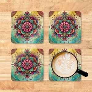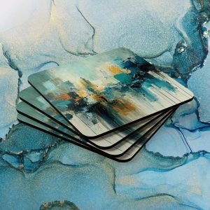 “Fallen Cityscape Abstract Art” Corkwood Coaster Set
