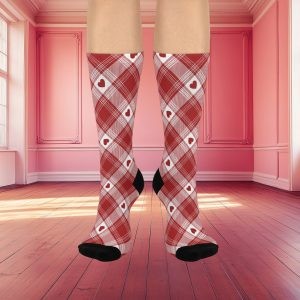 “Red Hearts Plaid” Print Cushioned Crew Socks